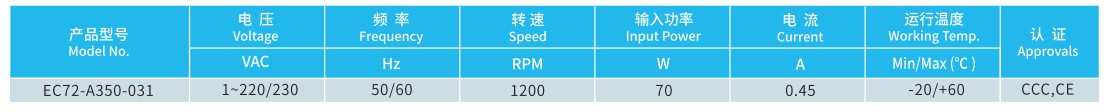 產(chǎn)品型號 EC72-A350-031