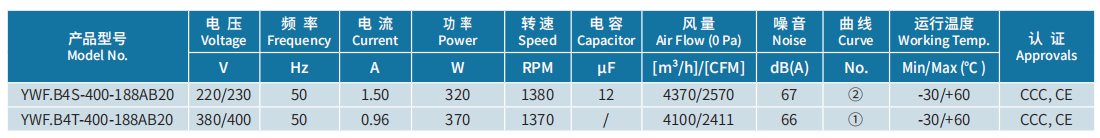 產(chǎn)品型號(hào) YWF.B4S-400-188AB20