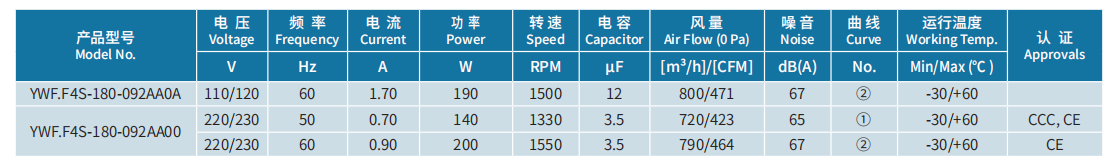 產品型號 YWF.F4S-180-092AA0A