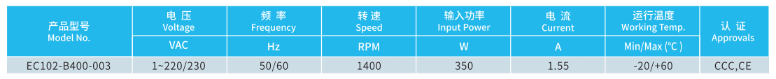 產(chǎn)品型號(hào) EC102-B400-003