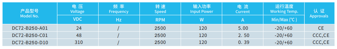 產(chǎn)品型號(hào) DC72-B250-D10