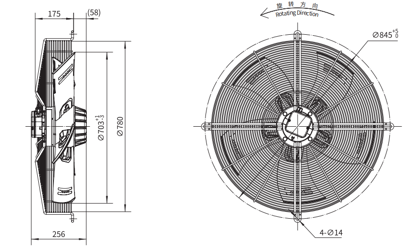 該系列產品為我司新開發(fā)的系列產品,規(guī)格型號覆蓋從A250至A800的直徑范圍,體積流量最大至25000m^3/h;該系列外轉子風機產品具有結構緊湊,運行可靠,節(jié)能高效,運行噪音低,設計壽命長及安裝方便等主要特點; 產品的葉片采用的“前掠”機翼葉型,能效和噪音表現較薄板葉型有明顯優(yōu)勢;此外葉片根據不同的使用環(huán)境,可選用輕質塑料或者鋁合金材料,具有更廣的環(huán)境適應性;輕質材料的采用降低了軸承和整個轉子動力系統(tǒng)的負荷,從而進一步提高產品的可靠性及使用壽命。